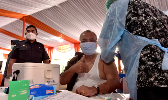 "Sebagaimana kita ketahui, gara-gara covid-19, perdekonomian bangsa menjadi terpuruk. Sehingga solusinya adalah vaksinasi bagi selurug warga negara," ujar Gunawan.