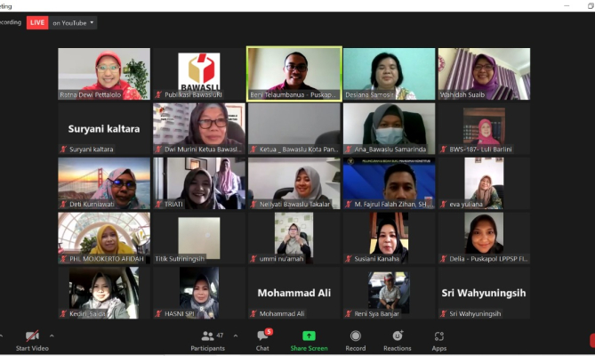 Anggota Bawaslu Ratna Dewi Pettalolo (kanan) menjadi narasumber dalam Webinar bersama Pusat Kajian Politik Universitas Indonesia (Puskapol UI) di Jakarta, Senin (22/11/2021)/foto: Publikasi dan Pemberitaan Bawaslu