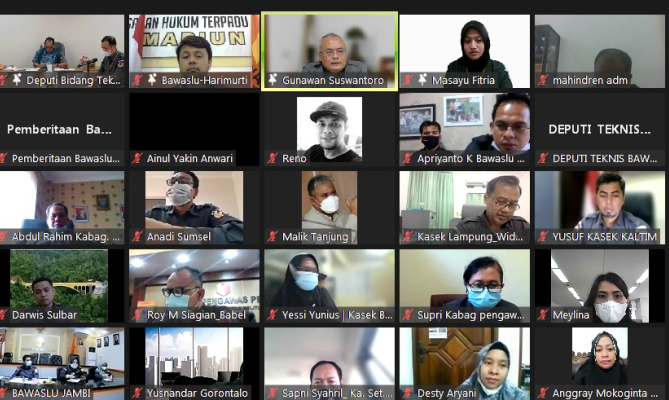 Sekjen Bawaslu Gunawan Suswantoro memberikan arahan dalam Rakor Deputi Bidang Teknis dengan Sekretariat Bawaslu Provinsi dalam Persiapan Pemilu Serentak Tahun 2024 yang dilakukan secara daring, Senin (13/9/2021)/foto: tangkapan layar zoom.